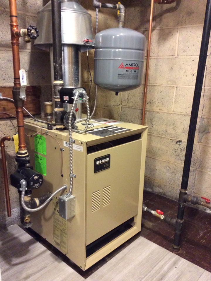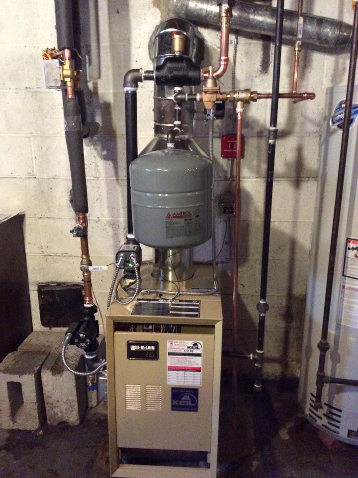 New boiler installation. Replace existing old gas boiler with new Weil-McLain boiler